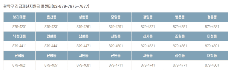 기간은 방문신청과 동일하고 관악구 행정동 별로 문의 및 신청을 하셔야 해서 각 주민센터별 전화번호를 남겨드리도록 하겠습니다.