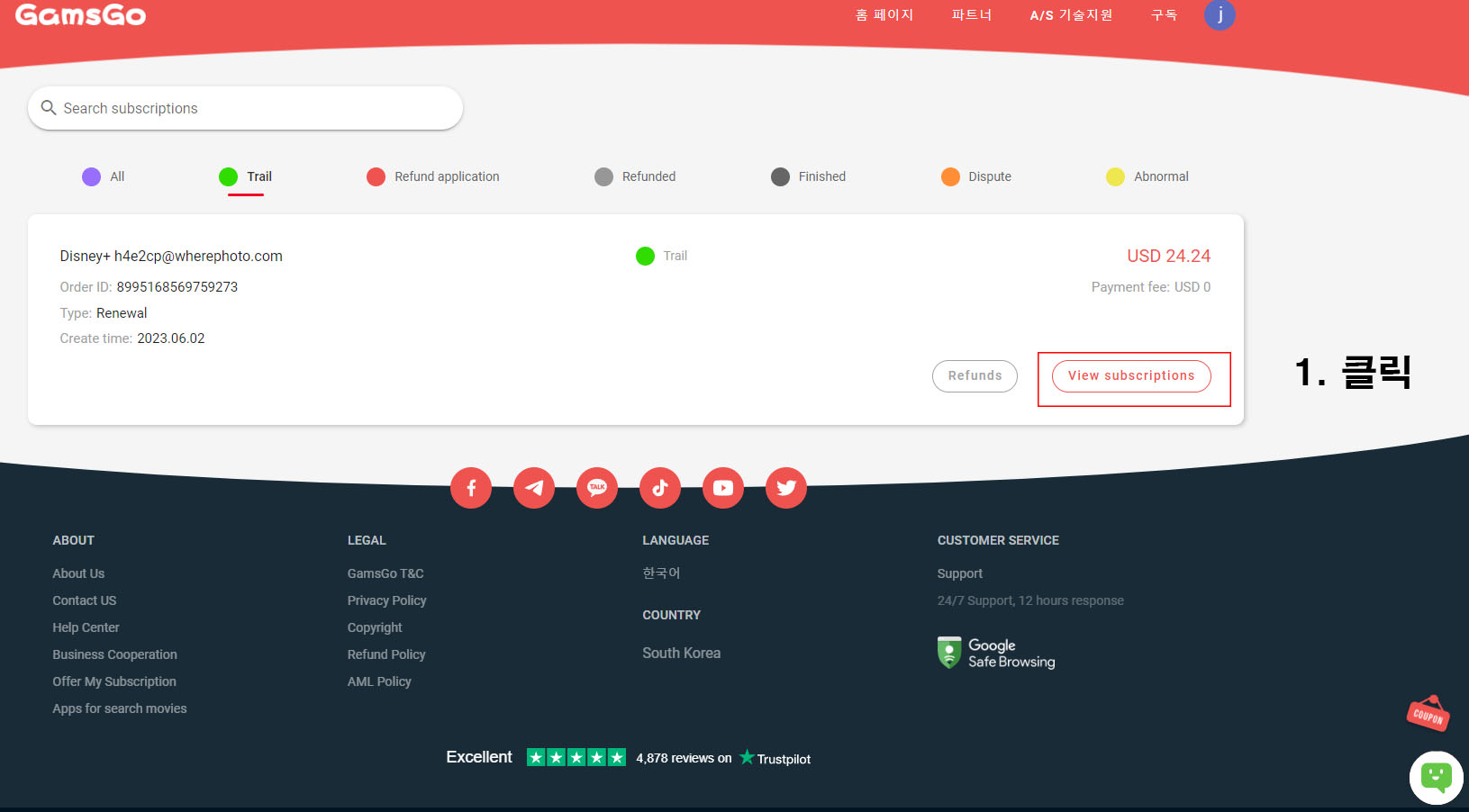 주변에 같이 볼 지인이 없다면 저는 겜스고를 통해서 저렴하게 이용하는 것을 추천드리는데요. 겜스고는 계정 구독 공유사이트인데 넷플릭스, 디즈니 플러스, 스포티바이, 유튜브 프리미엄 등 다양한 구독 OTT를 싸게 사용이 가능합니다.