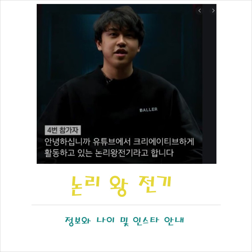 오늘은 이 중에서도 가장 화제가 되고 있고 가장 칭찬(?)과 많은 분들의 찬사를 받고 있는 논리 왕 전기에 대해서 여러분에게 간단히 소개 및 많은 분들이 궁금해하시는 나이와 인스타 등 정보에 대해 여러분에게 소개해드리려고 합니다. 방송 전에는 전기가 유명하지 않았는데 지금은 라이브 방송을 켜면 10만 명 이상이 들어오더라고요.. 그 정도로 화제의 인물인데 한번 지금부터 알아보겠습니다.