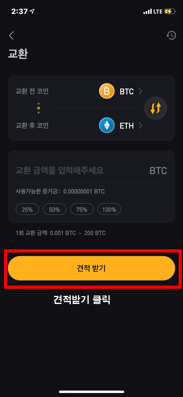 이렇게 선택을 하신 후 아래 수량을 적은 신 후 견적 받기를 누르시면 같은 가치로 코인을 교환을 바꾸실 수 있습니다. 코인 교환 역시 입출금 방법만큼이나 굉장히 쉽지요!? 그렇다면 이제 선물거래 방법에 대해서 알아볼까요?