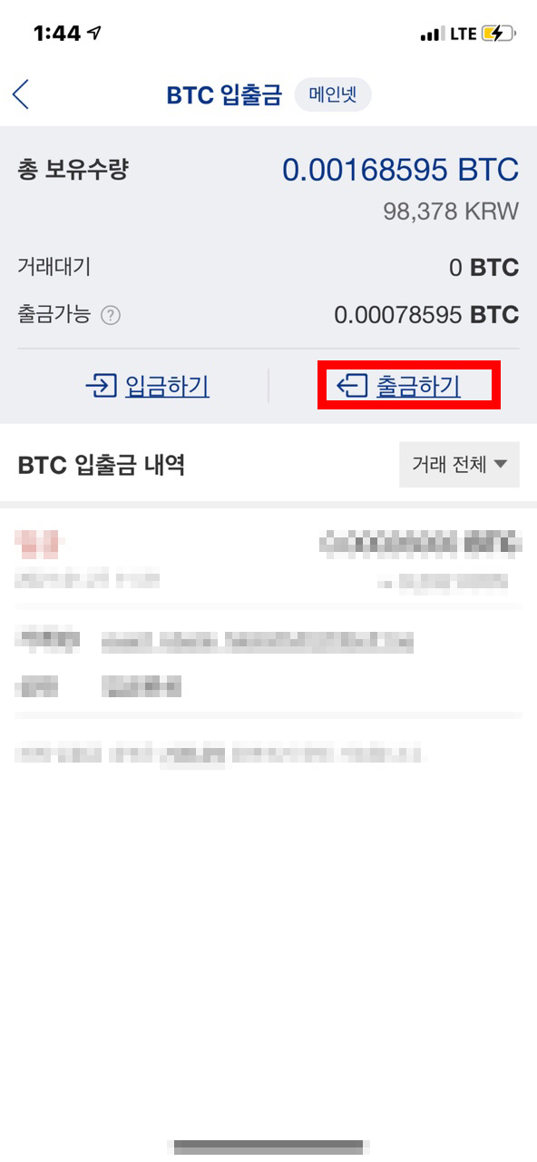 입출금을 누르시면 이제 보유하고 있는 코인이 나옵니다. 그 코인을 눌러주시면 됩니다. 저는 오늘 비트코인 기준으로 설명을 해드리기로 했으니 비트코인을 누르시면 됩니다. 다른 코인도 보유를 하시면 출금이 가능하니 참고 부탁드립니다.