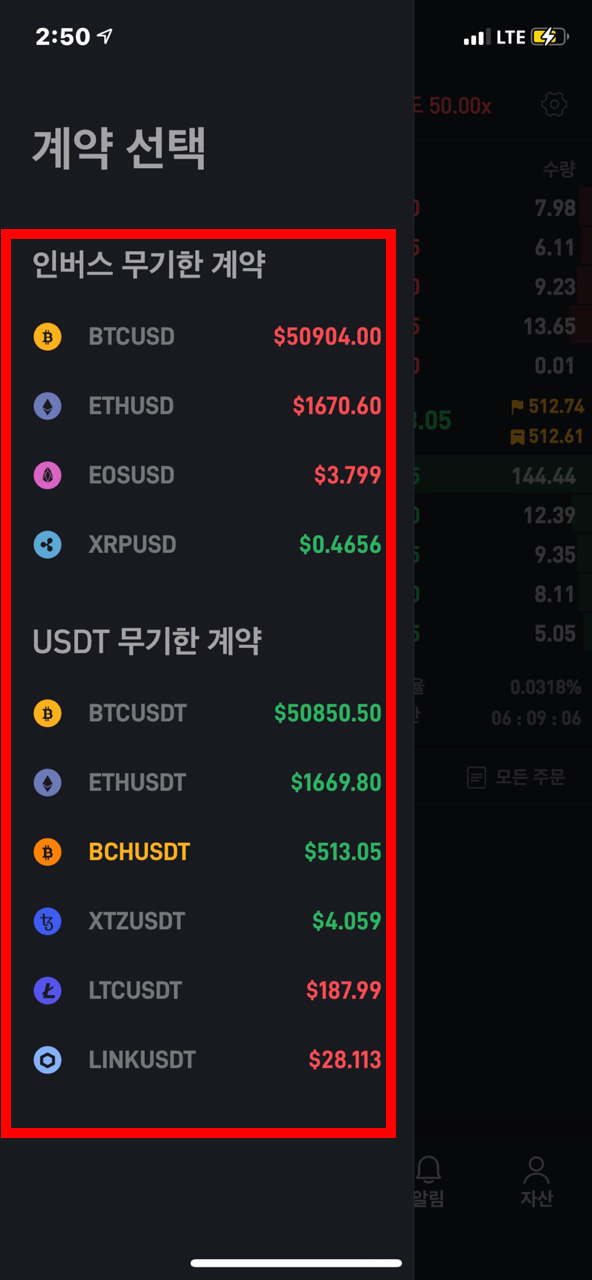 인버스 무기한 계약을 하려면 거래하시려는 코인을 눌러서 고르시고 usdt 무기한 계약을 하시라면 usdt로 바꾸시면 됩니다. 물론 비트코인으로 그대로 인버스 무기한 계약을 하시려면 코인 교환을 안 하셔도 무방하지요!