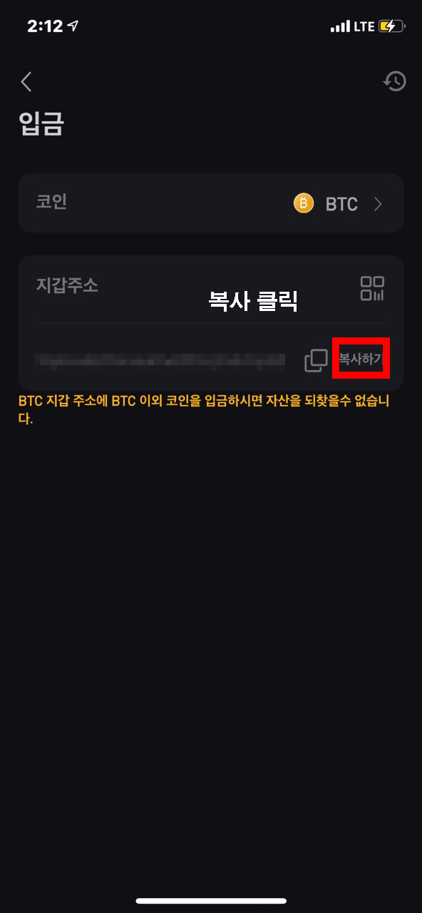 입금하기를 누르시면 이제 바이비트의 내 비트코인 지갑 입금 주소가 나오게 됩니다.