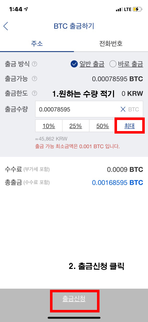 비트코인은 0.001 BTC부터 출금이 가능합니다. 이건 코인마다 다르니 0.001 btc보다 적은 금액의 경우에는 리플 등 다른 코인을 이용하시면 되지요.
