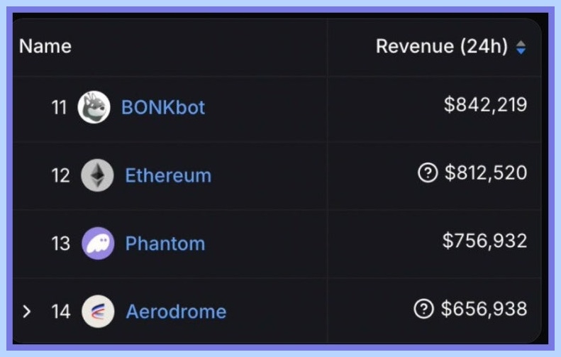 요즘 밈코인이 큰 인기를 얻으면서 DEX 거래소의 활발한 움직임과 맞물려 더욱 많은 관심을 받고 있지요. 실제로 이 봇은 이더리움 관련 매출을 뛰어넘는 성과를 보였다는 소식도 전해지니 앞으로의 성장성이 더욱 더 기대가 되는 상황입니다.