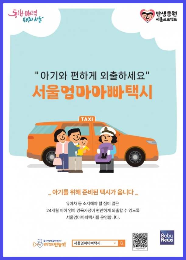 서울 엄마아빠택시는 한시적으로 시행되는 제도로, 신생아를 포함한 어린 자녀를 키우는 가정이라면 카시트가 설치된 택시를 무료로 이용할 수 있는 정책입니다.
