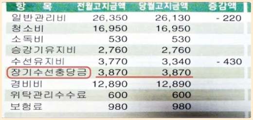 여러분, 혹시 매달 내는 관리비 명세서를 꼼꼼히 살펴보신 적 있으신가요? 그 안에 '장기수선충당금'이라는 항목이 있다는 걸 아셨나요? 이 비용은 단순히 건물을 유지보수 하는 데 쓰이는 돈이 아닙니다. 아파트의 주요 시설물들이 시간이 지나면서 노후화되면 큰 비용을 들여 교체하거나 대대적인 수리를 해야 하는데, 이때 필요한 자금을 미리미리 조금씩 모아두는 거예요.