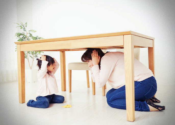 이건 많은 분들이 무슨 소리 이실까? 하실 수도 있는데요 보통 지진이 났을 때에는 머리를 보호하고 테이블 밑으로 숨으라고 어렸을 때부터 배우기 때문인데요, 이것은 현실상으로 지진이 많이 나는 일본에 적합한 방법이라고 합니다.