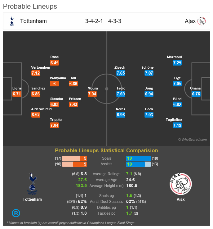 토트넘과 아약스의 챔스 1차전 예상 라인업입니다.
