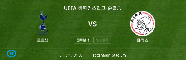 챔스 4강 토트넘 VS 아약스 1차전 전적과 일정 및 중계 보는법
