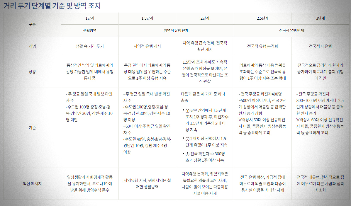 사회적 거리두기 3단계의 기준은 전국적 대유행으로 전국적으로 급격하게 환자가 증가하여 의료체계 붕괴 위험에 직면한 상황에 3단계로 격상을 하게 됩니다.