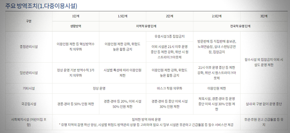 아직 사회적 거리두기 3단계가 되기 전인 현재 기준 2.5단계 마트,음식점,백화점,이미용업,놀이공원,워터파크,멀티방,오락실 등의 방침인데요, 정확히 모르시는 분들이 계셔서 한번 더 확인 해보세요