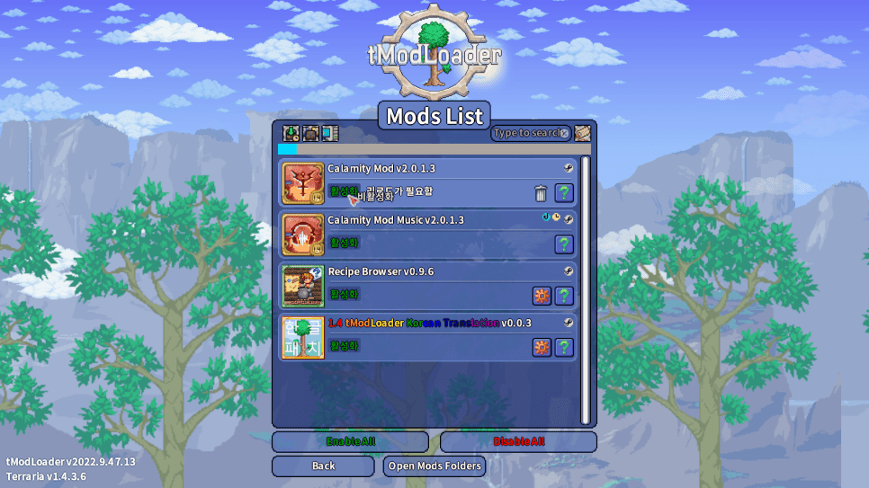테라리아 칼라미티 모드 및 한글패치 하는 방법