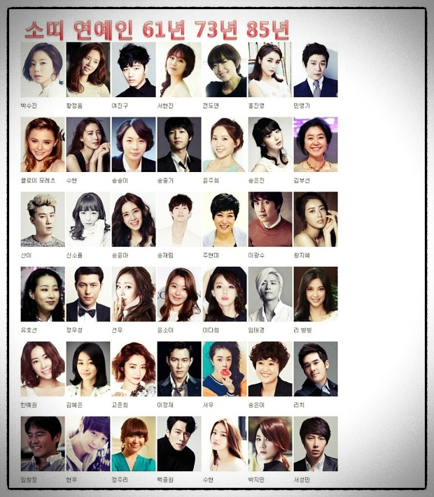 올해 소띠는 60년대부터 00년도까지만 살펴보면 61년생, 73년생, 85년생, 97년생이 속하는데요 성실하고 우직한 소를 의미해서 그런지 정말 화려한 스타들이 많이 있습니다. 살펴보도록 할까요?